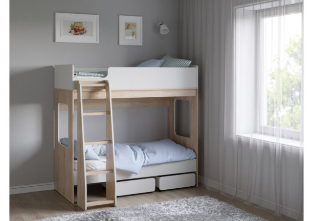 2 ящика внизу кровати обеспечат хранеие игрушек и порядок в комнате. Ящики оборудованы прямохоными колесными опорами.