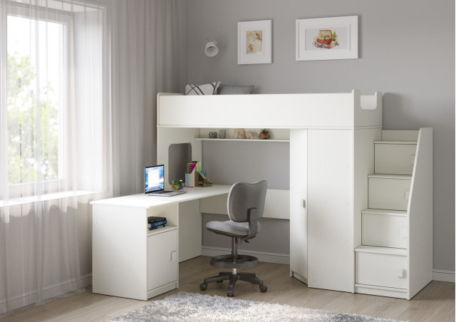 Учебная зона со столом под спальным местом открывает возможности для письменных работ,а также здесь удобно расположить ноутбук.