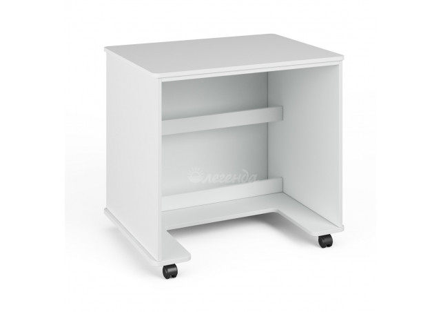 Практичный белый стол c колёсиками,легко перемещается по полу,задвигается и выдвигается.На боковом борту присутствует ручка для более комфортного перемещения столика.